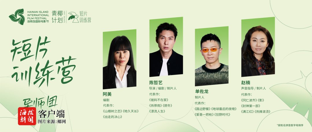 第七届海南岛国际电影节“青椰计划”短片训练营导师团阵容公布