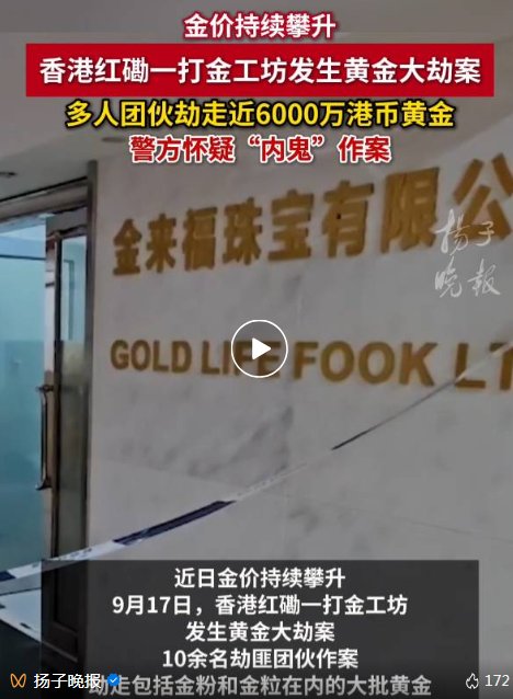 (原标题:香港突发黄金大劫案:10多名男子闯进打金工场抢走65公斤黄金,总值超5300万,警方怀疑“内鬼”作案)