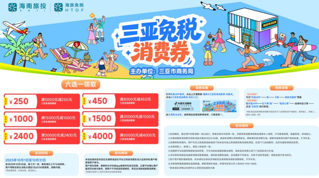 海旅免税积极响应政府惠民政策,打通线上线下渠道,精准触达目标消费者。假期持续发放免税全品类政府消费券与黄金专属消费券,通过“政府消费券+门店满减/限时折扣/多倍积分/爆款秒杀”等优惠组合活动,以及推出银行支付立减活动,有效激发免税市场消费活力。