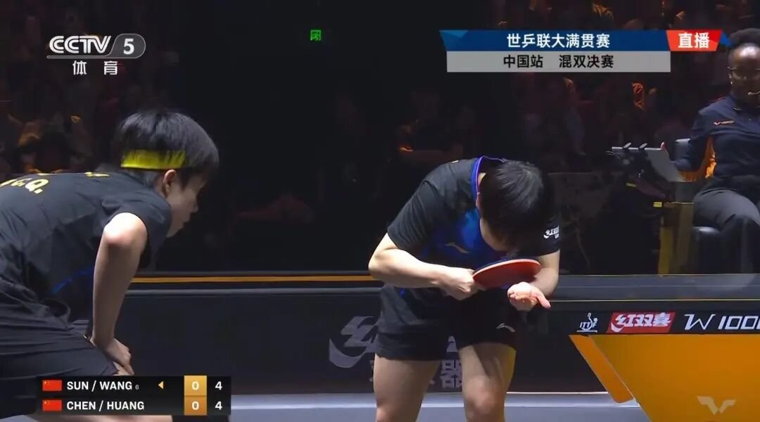 首局比赛,王楚钦/孙颖莎11比8战胜黄友政/陈熠 ,取得开局1-0领先。