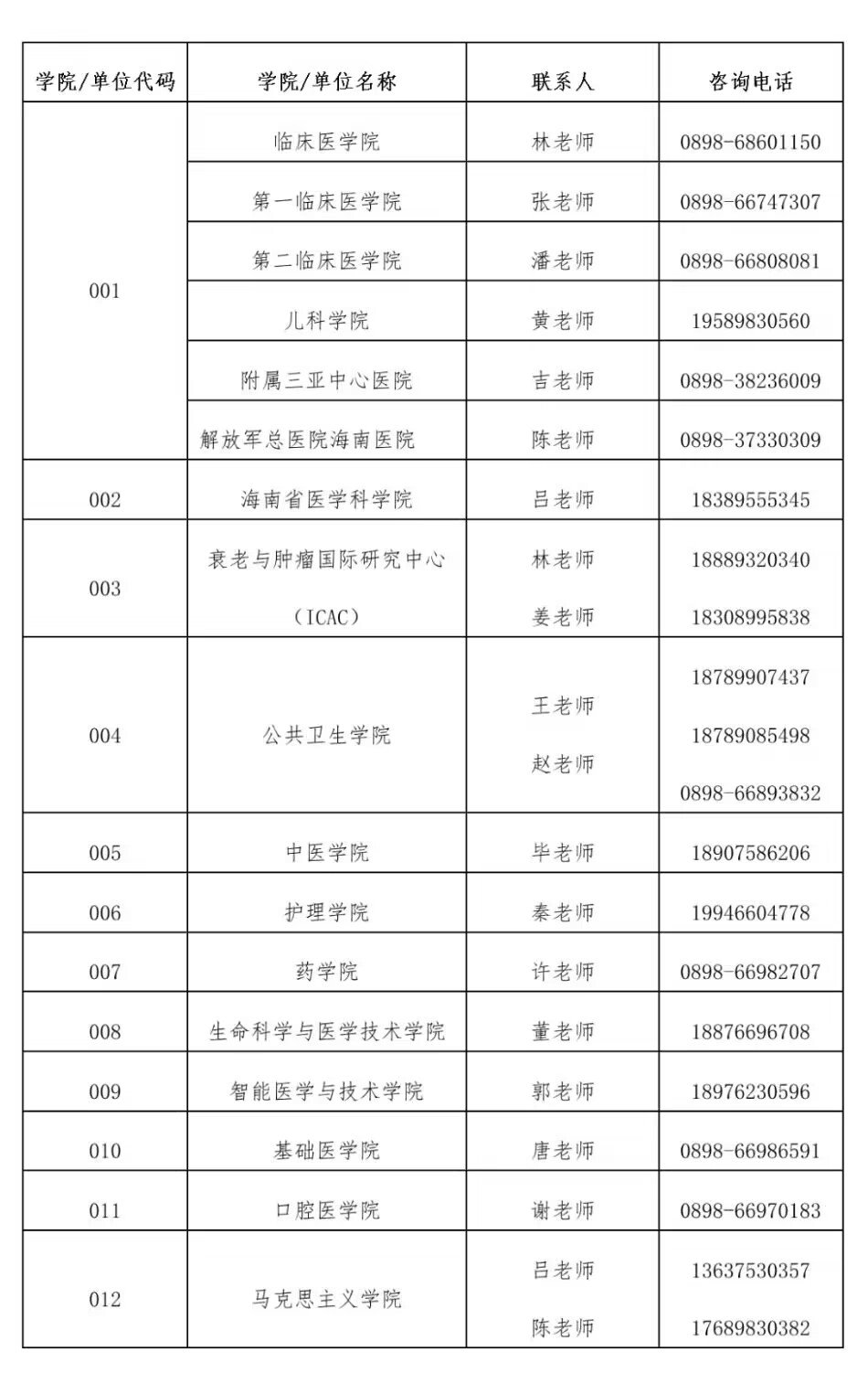 各学院/单位招生咨询热线(工作日:8:00—12:00、15:00—18:00)