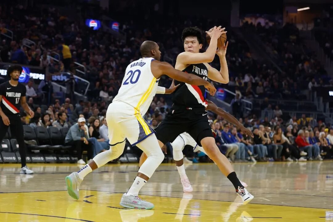 北京时间10月9日,2025—2026赛季NBA季前赛,波特兰开拓者客场对阵金州勇士。中国球员杨瀚森迎来职业生涯NBA季前赛首秀,他替补登场21分钟,贡献4分4篮板1助攻。