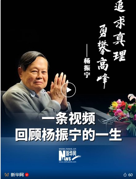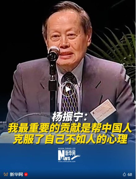 从清华园的青涩少年到诺贝尔领奖台上的华人骄傲,从规范场理论的奠基者到三尺讲台上的大先生,他用一个世纪的生命旅程,取得了峙立如嵩、博观如海的学术成就,书写了功在世界、心怀家国的隽永篇章。