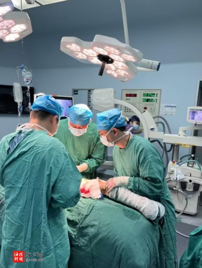 受伤的陈阿婆年近百岁,紧急入院后,海南医科大学第一附属医院创伤中心崔红旺主任带领团队立即启动多学科会诊机制。创伤科、麻醉科、心内科、呼吸科专家迅速集结,综合评估患者复杂病情。