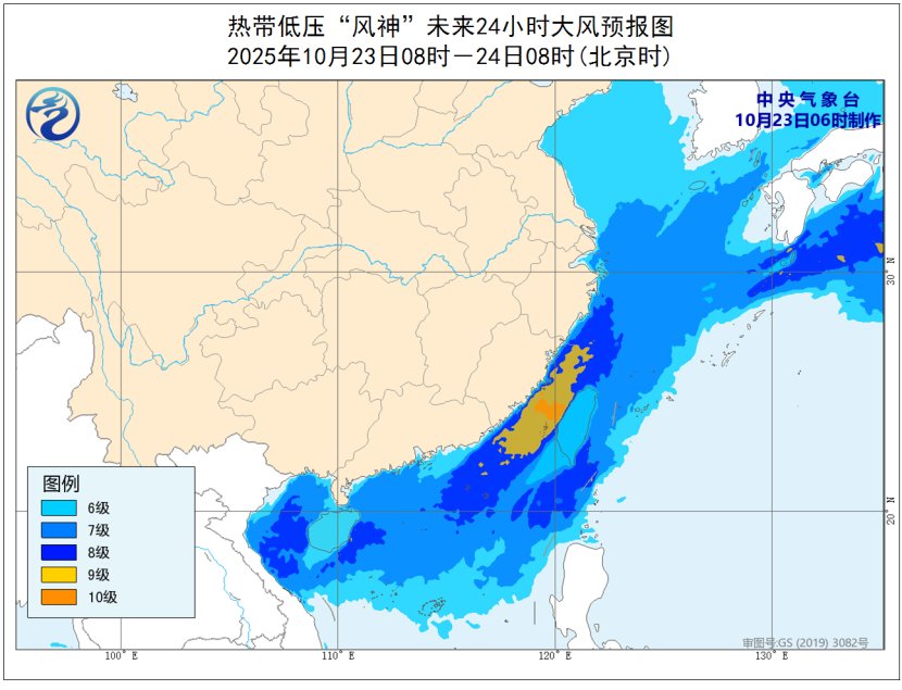 大风预报:23日08时至24日08时,台湾海峡、台湾以东洋面、巴士海峡、南海北部和中部、东沙群岛、中沙群岛及西沙群岛附近海域、北部湾、琼州海峡、东海、黄海、渤海海峡以及山东半岛沿海、江苏沿海、上海沿海、长江口区、杭州湾、浙江沿海、台湾沿海、福建沿海、广东沿海、广西沿海、海南岛沿海将有6~8级大风,阵风9~10级,其中东海西南部的部分海域、台湾海峡、福建沿海的风力有9~10级,阵风11~12级。