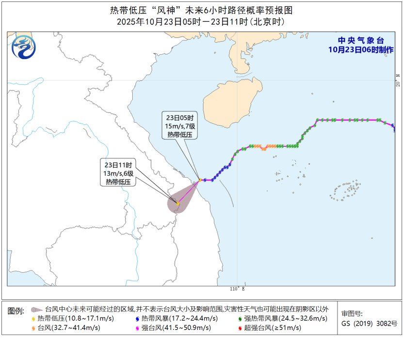 预计,“风神”减弱后的热带低压将以每小时20~25公里的速度向西南方向移动,强度逐渐减弱。中央气象台于今天早晨6时解除台风黄色预警。