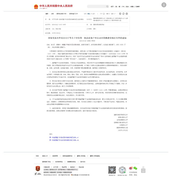 《关于印发第一批高质量户外运动目的地建设地区名单的通知》原文