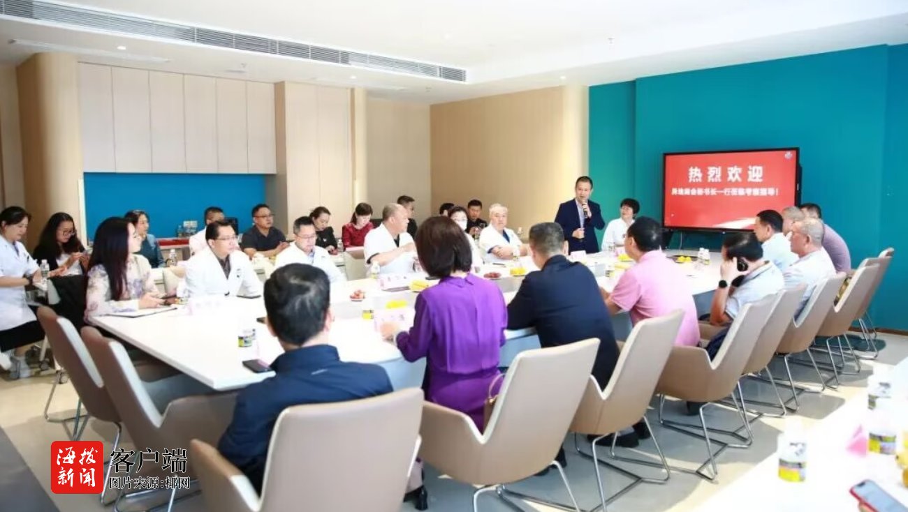参观结束后,双方举行了亲切友好的座谈。海南省肿瘤医院、海南成美医院院长余书勇教授对各位商会“大管家”的到来表示热烈欢迎。致辞中,他风趣地把此次考察团队称为“秘书长天团”,并承诺以优质的医疗服务,为商会成员的健康保驾护航。