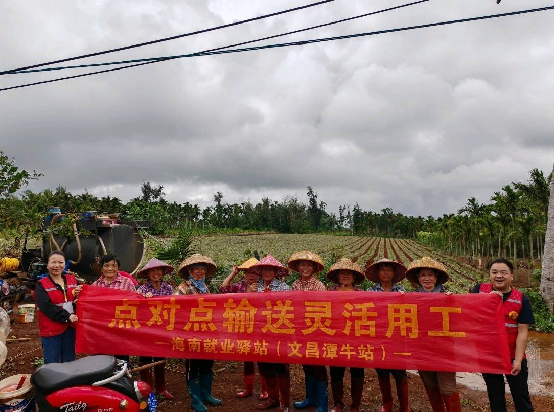 当天,潭牛就业驿站便通过“点对点”的精准输送服务,组织9名灵活就业工人前往潭牛镇中心村委会上溪村凤梨种植基地,主要负责凤梨种植和浇水等田间工作,日薪达150元,既解了企业的燃眉之急,也让乡亲们在家门口实现了灵活增收。