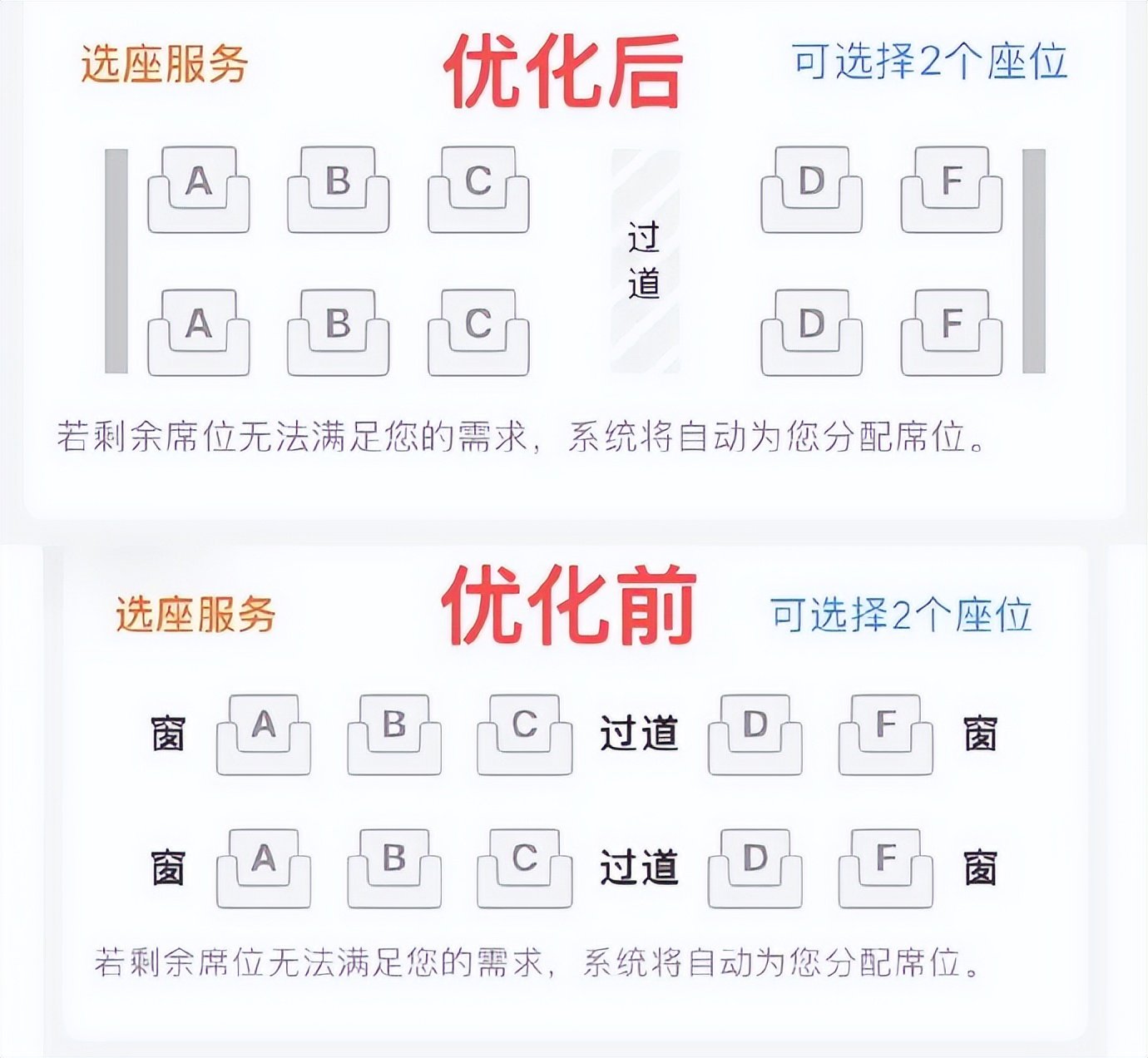 据中国新闻周刊报道,12月2日,记者致电12306客服电话咨询,工作人员回应称,最近对于购票选座界面进行了优化调整,A、F座两侧并不是“墙”,而是将“窗”字改为一道竖线。A、F座依然是靠窗侧的座位,只是不一定正对窗,可能在窗户前或窗户后,界面优化是为了避免因座位是否靠窗引起的误解。