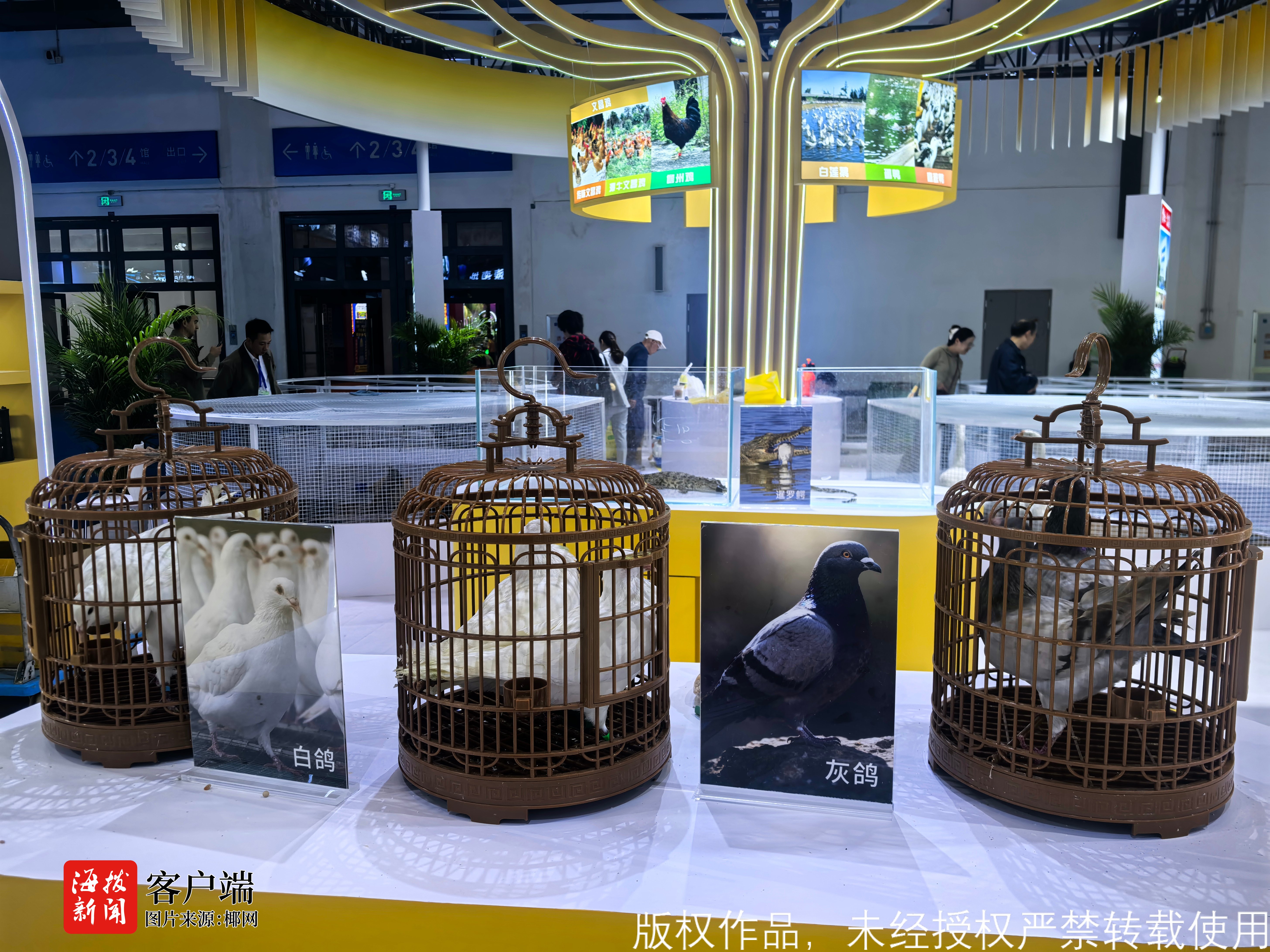 该区域的讲解员吴鑫向记者介绍,此次他们在这里特别开设了特色养殖区,有文昌鸡、乌烈羊、东山羊、白莲鹅、儋州鸡、五脚猪、嘉积鸭、临高猪、东方鳄鱼、灰鸽等特种养殖成果,展示区模拟了这些畜禽的自然生长环境,配以专业的品种介绍和养殖知识解说,让观众对海南特色畜禽的优良品质有更直观的认识。这不仅展现了海南的特色畜禽养殖业非常丰富,以及当地独特的农业多样性与深厚的传统,更是海南农业现代化发展的生动缩影。让观众更是“看得见摸得着”,不虚此行。