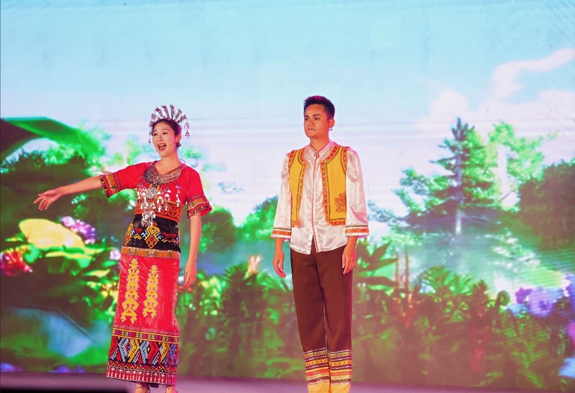 除调声外,黎族、苗族歌舞等轮番登场,绚丽服饰与灵动舞姿尽显民族风情;传统乐器演奏与现代舞台技术结合,为观众呈现一场跨越时空的文化对话。儋州市民李先生感慨:“以前只在电视里看过非遗表演,今天现场感受,才真正体会到儋州文化的深厚底蕴!”
