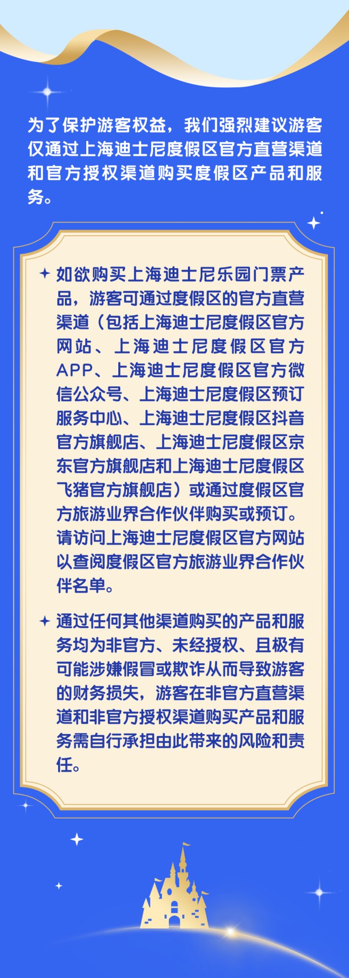 通过其他上海迪士尼度假区官方授权渠道购买上述门票的游客,需联系原购票渠道咨询退改规则。需说明的是,“乐园标准门市价”门票不含任何折扣或促销类门票产品。
