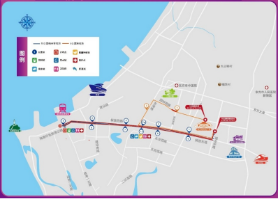 东方市文化广场东门(起点)—福龙中路—解放东路—东海路—园林西路—园林中路—东方市文化广场北门(终点)