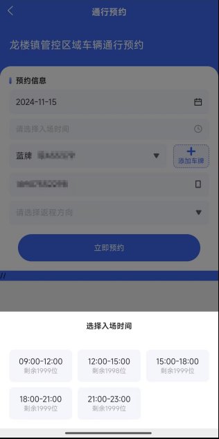 1.车辆预约按照“有序、限量、预约、错峰”要求,实行实名制线上预约,预约车辆需在预约时间段内按时进入东郊镇、龙楼镇交通管控区域。