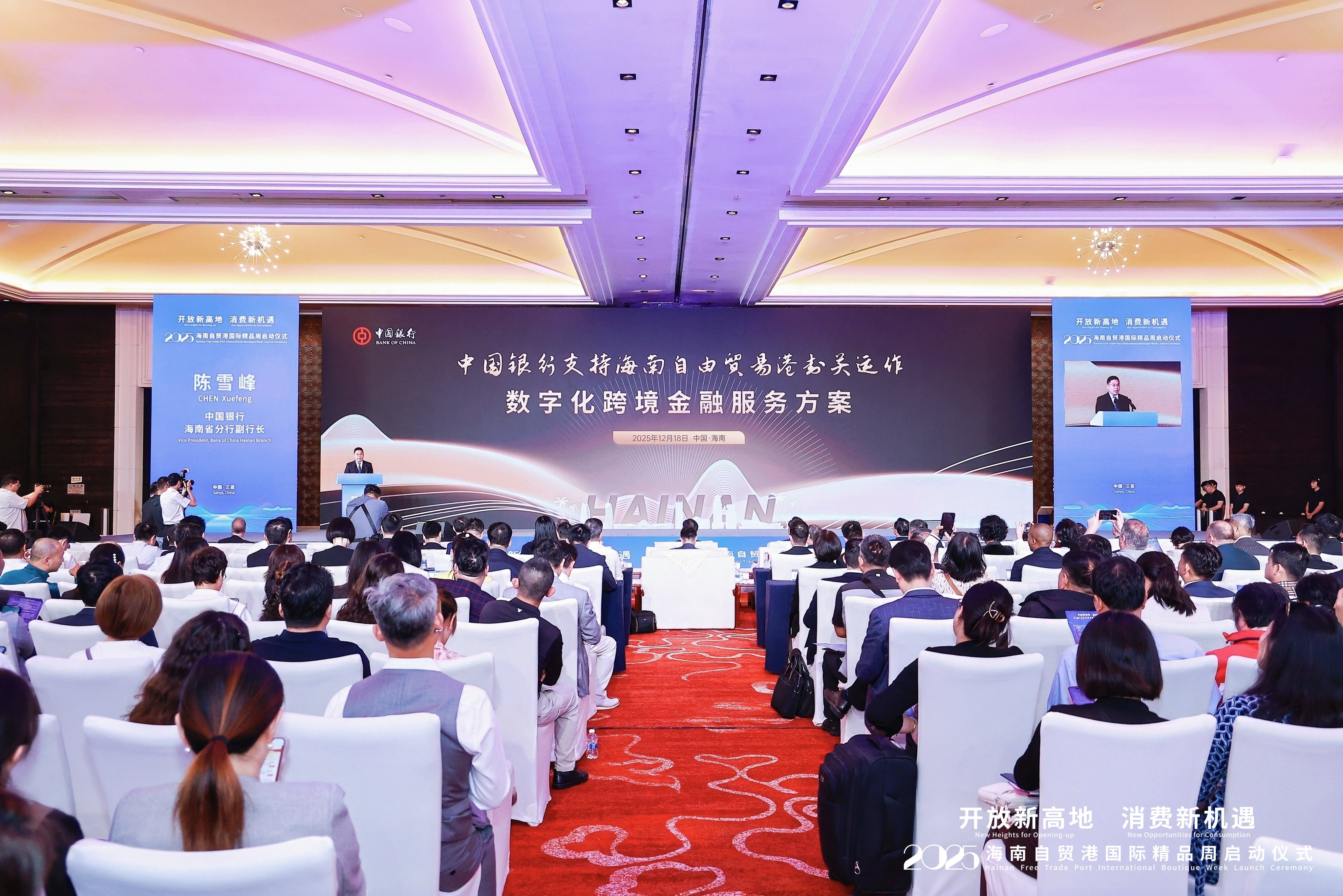 活动现场,中国银行发布了服务自贸港“两区一高地”建设的系列金融方案,包括跨境资金集中运营、企业家综合服务及数字化跨境金融等一揽子创新举措,为封关后的贸易投资自由化便利化提供坚实金融支撑。