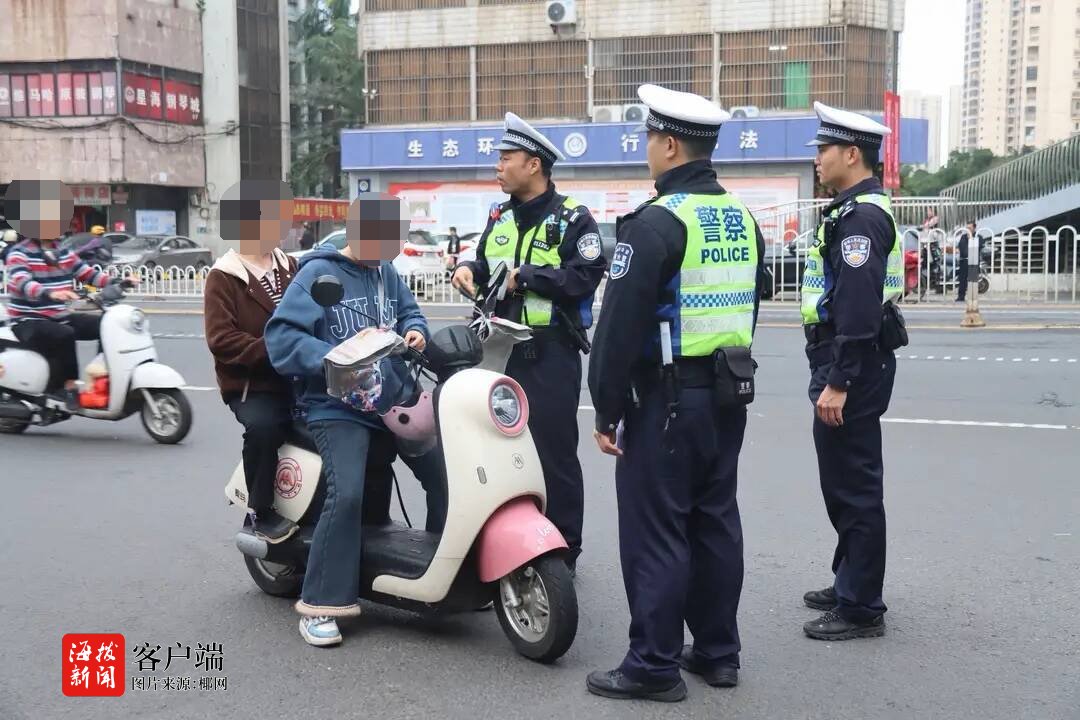 头盔戴好、逆行叫停!海口交警在玉河路整治交通乱象