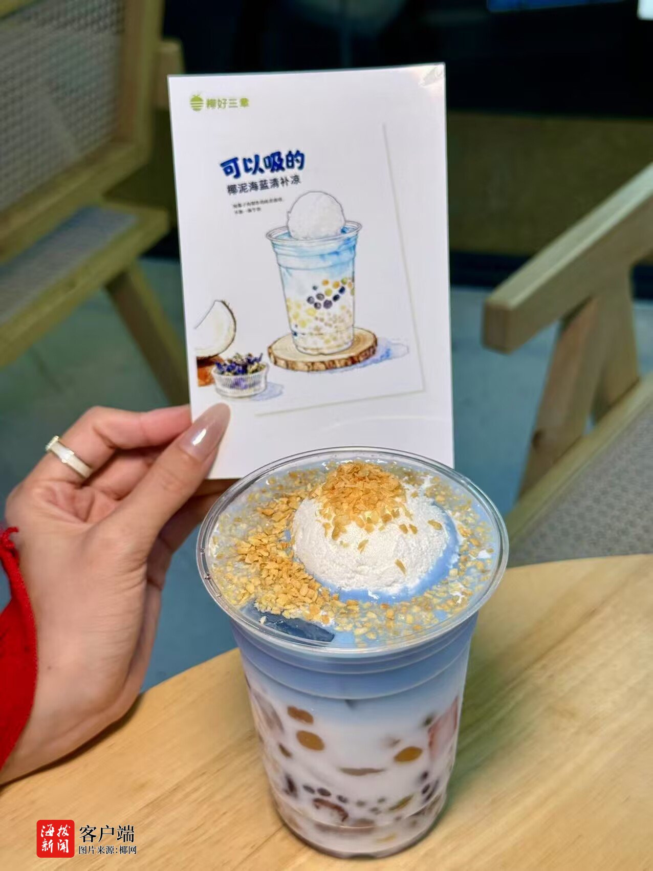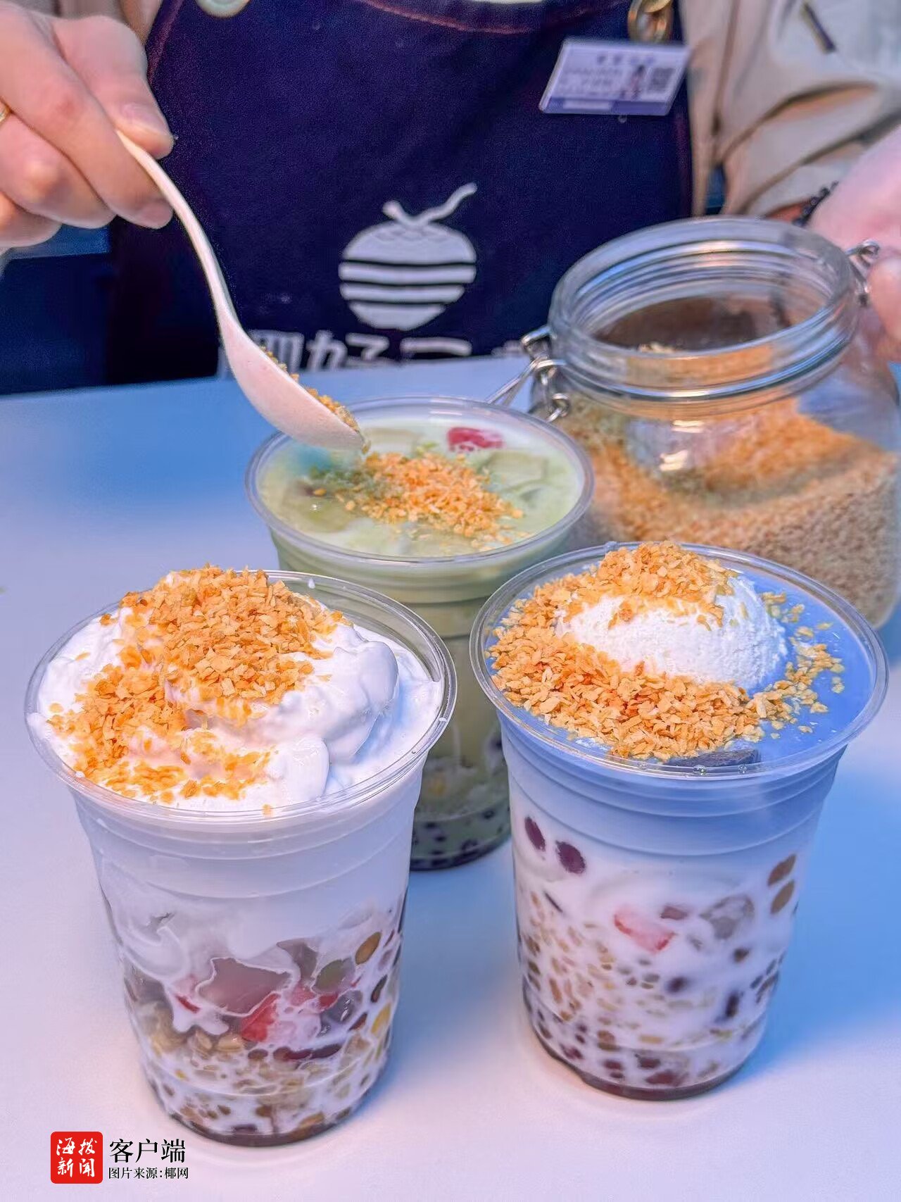 在颜值经济时代,海蓝椰泥冰淇淋清补凉巧用蝶豆花的蓝、红腰豆的红、玉米粒的黄,将海南大地的色彩转化为极具传播力的视觉符号。