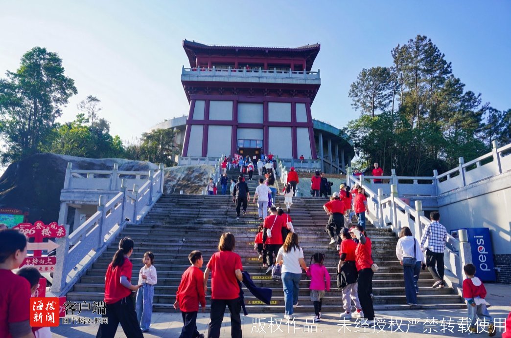 活动现场还设置了旗袍展示、舞狮迎宾等文化展演,以及集章打卡抽奖等互动环节,形成了“登山+文化+游戏”的立体体验模式。新年登高作为承载人们健康与幸福愿望的民俗健身活动,已成为儋州喜迎新年的重要标志。