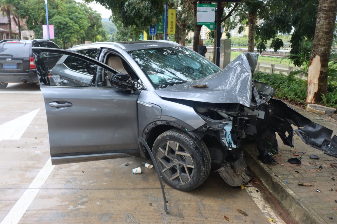 2025年11月3日14时26分,在海南省五指山市,一辆小轿车正沿着河北东路朝着什曼桥方向行驶。当车辆行至圣河湾小区路段时,意外突然发生。驾驶人由于疲劳驾驶,且对车速控制不当,导致车辆瞬间失控,径直驶入了对向车道,最终撞上了路边的绿化树。