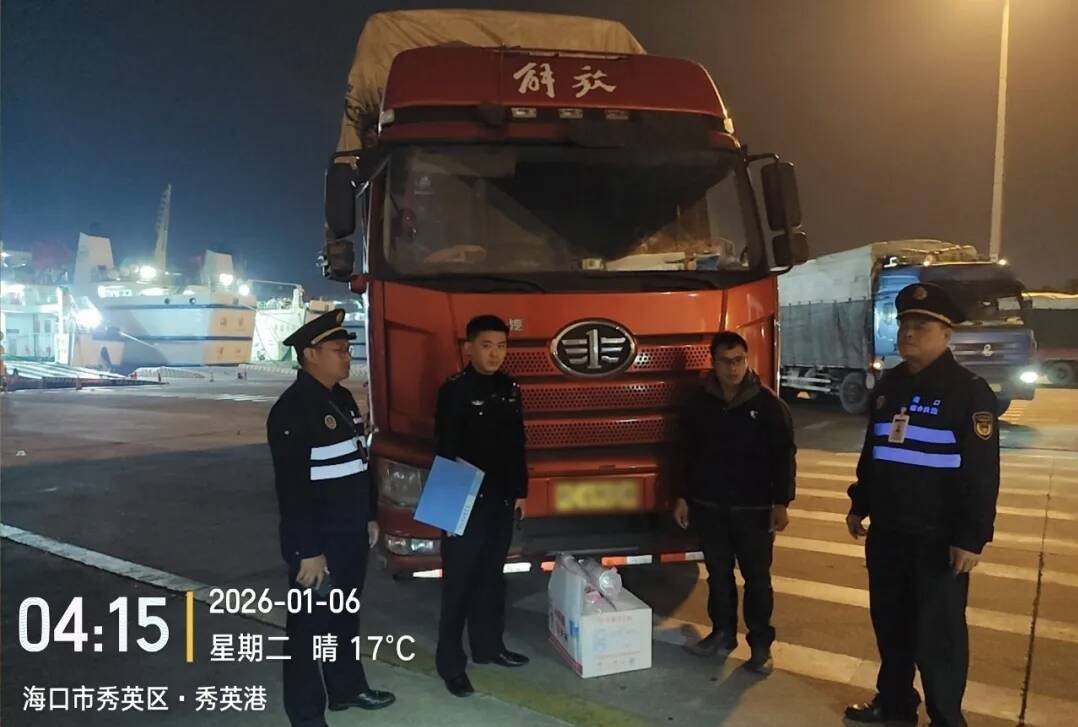 商报全媒体讯(椰网/海拔新闻记者 李兴民 通讯员 周海燕 摄影报道)2026年1月7日,海南省禁塑执法攻坚小组(以下简称:“攻坚小组”)再传捷报,继1月4日查获线上线下联动销售违禁塑料制品案件后,1月6日至7日凌晨,攻坚小组联合多部门跨区域作战,在秀英港、新海港先后查获3辆违规运输违禁塑料制品车辆,查扣违禁塑料制品约3000箱,持续筑牢海南禁塑“防线”。