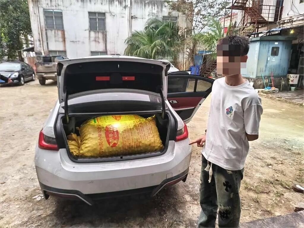 “半夜十二点这样,人和车都比较少,我们就把车开到高速路口附近的槟榔园里面偷槟榔青果。”犯罪嫌疑人骆某说道。针对被盗槟榔青果的去向,民警趁热打铁展开追问,成功在某酒店楼下的一辆轿车后背箱里查扣到两袋半被盗的槟榔青果。