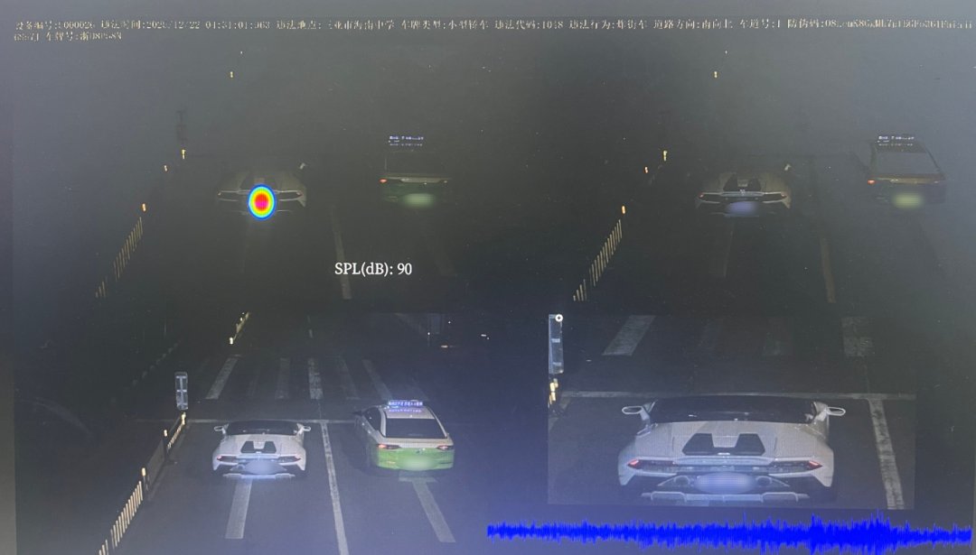 以往整治主要依靠路面巡逻与设卡拦截,“人力围堵”模式覆盖有限、震慑不足。为此,三亚交警引入“炸街”智能识别电子警察系统,推动执法从“被动查处”向“智能精准打击”转型。该系统通过前端感知设备捕捉超标声浪,依托噪声模型智能辨识非法改装车辆特有的轰鸣声,同步抓拍视频、识别车牌,自动生成“声音云图+影像”双重证据链。一旦系统预警,后台即可快速审核并启动非现场处罚,实现全时段、全路段“有炸即录、有据必罚”。