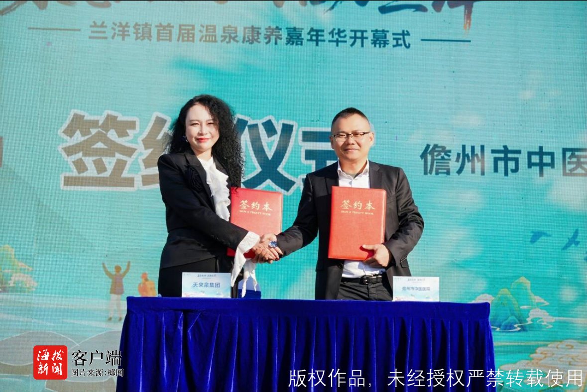两项重磅合作签约成为焦点,为兰洋康养产业发展锚定新方向。兰洋镇人民政府与海南省康养旅游协会签署康养旅游产业发展合作意向协议,结合兰洋镇优质温泉资源,共同打造集旅居度假、健康管理、休闲娱乐于一体的康养综合体。另一项签约中,儋州市中医医院与天来泉集团携手,依托天来泉在健康管理服务等领域的成熟经验,就兰洋镇氡泉康养理疗中心项目达成意向合作,将整合中医诊疗资源与行业资源优势,推动氡泉理疗与中医“治未病”理念深度融合,打造专业化康养理疗服务平台。