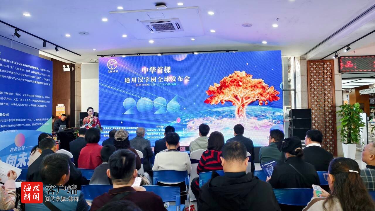商报全媒体讯(椰网/海拔新闻记者 张艺)椰风送暖,文脉永续。1月11日,中华首棵通用汉字树全球新闻发布会在海南省图书馆举行。此次发布会以“根承祖慧通今脉,干立天心载汉魂”为主题,集中展现通用汉字树在创新性发展中的突破成果等,通过数字技术动态呈现汉字演变脉络,为自贸港文化产业注入新动能。