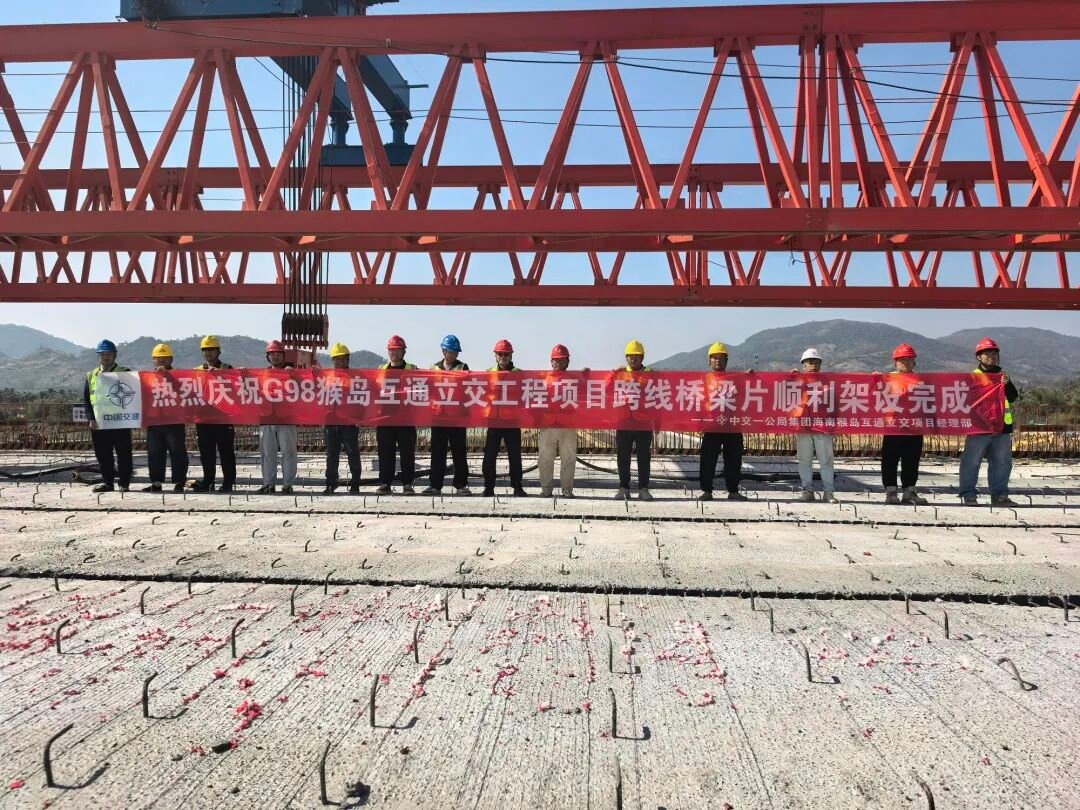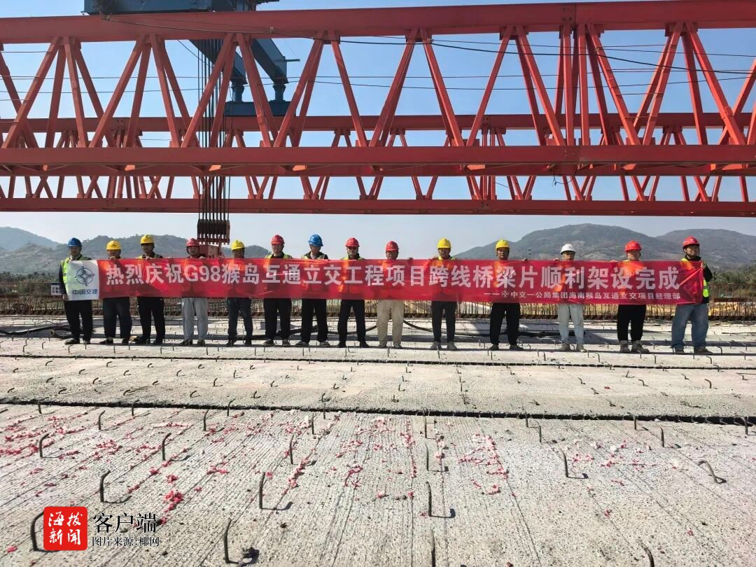 商报全媒体讯(椰网/海拔新闻记者 郭尚)1月11日,随着最后一片箱梁平稳落在支座上,由中交一公局承建的G98海南环岛高速猴岛互通立交工程跨线桥架设任务全部完成,标志着该项目建设取得重要阶段性成果,为后续桥面及附属工程施工奠定了坚实基础。
