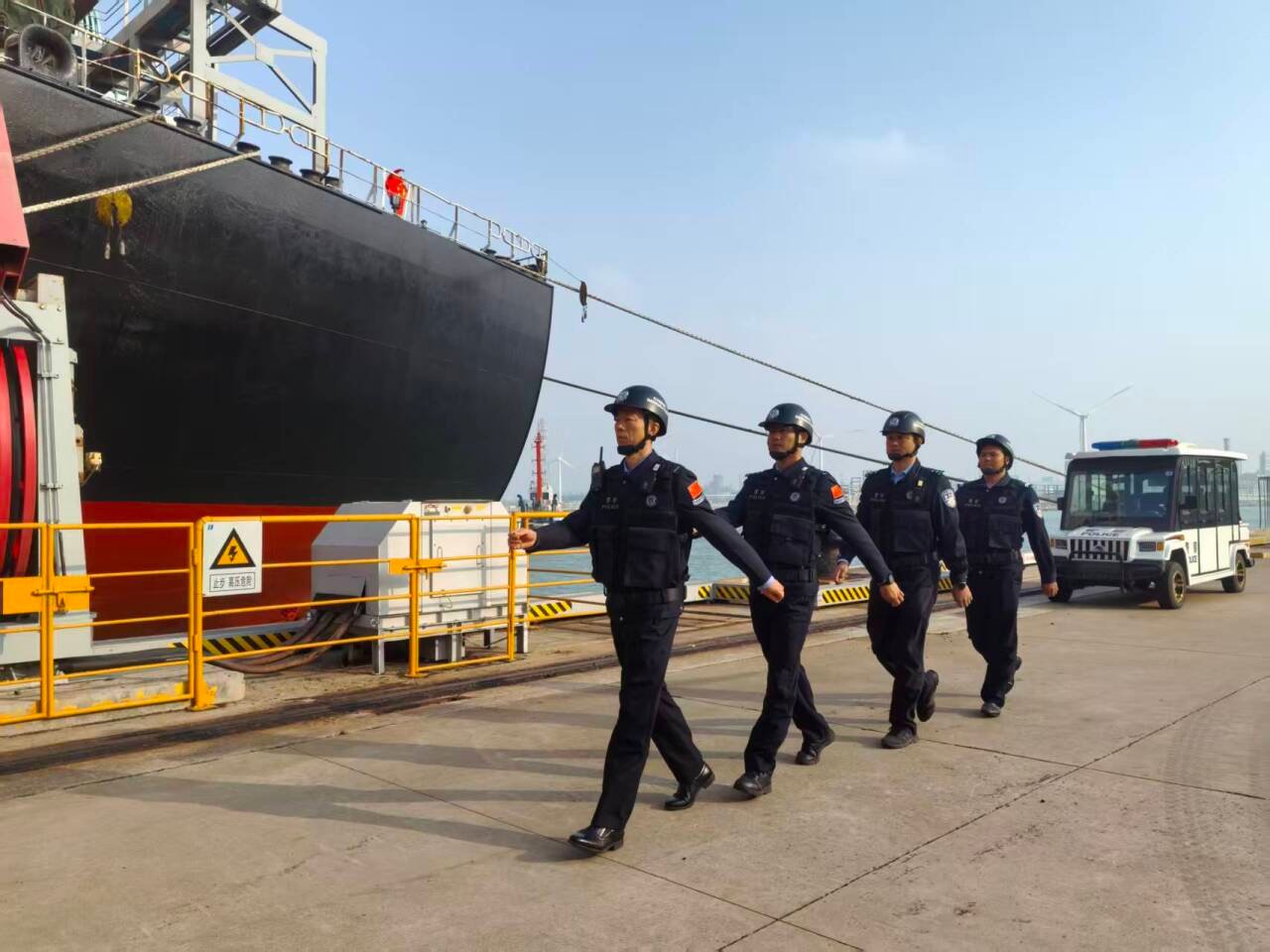 入夜后,口岸勤务依然紧张有序。19时30分,执勤民警高效办结“蓝海女士”轮出境手续。20时38分,为完成装卸作业的“海鑫油619”轮快速办理出境手续,实现船舶“检完即离”。21时,民警提前对接申报信息,对入境船舶“鼎衡3”轮开展入境预检,便于其靠港后快速投入作业。23时30分,民警再次巡查八所港口岸限定区域,并登上巴拿马籍“金谷”轮进行人员上下轮检查,以深夜的坚守护航口岸安宁。