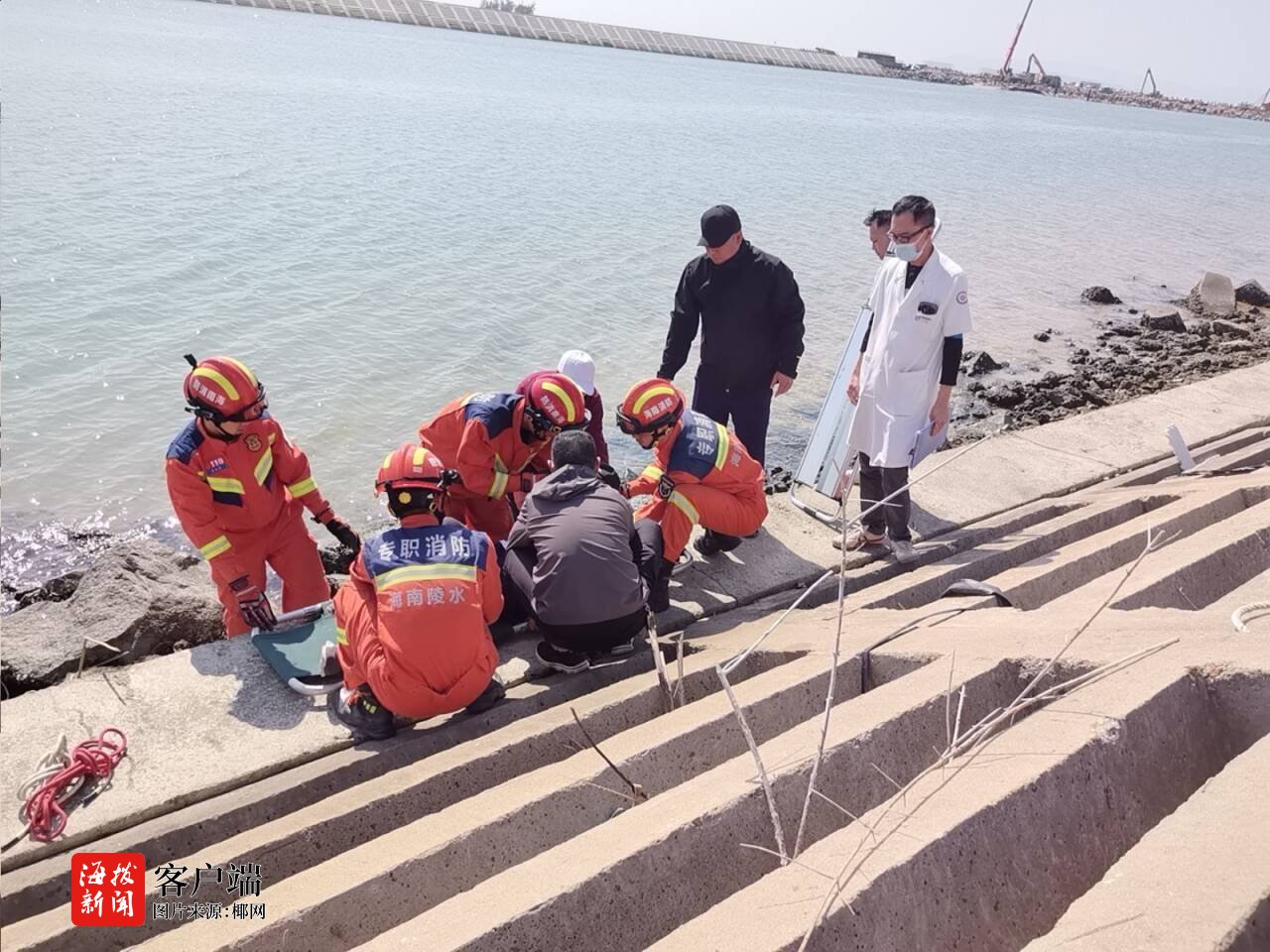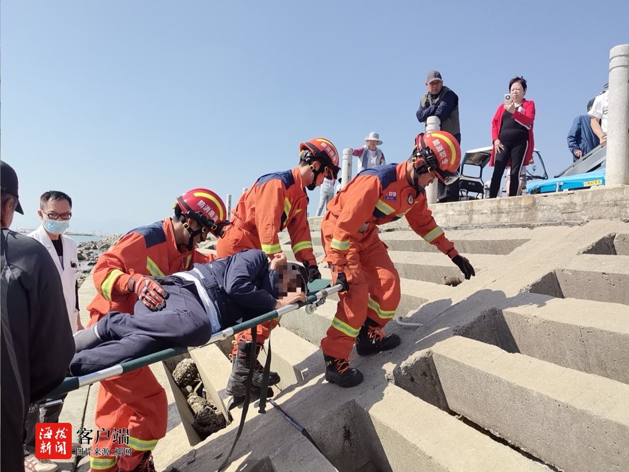商报全媒体讯(椰网/海拔新闻记者 李兴民 通讯员 吴清剑 摄影报道)1月11日11时,陵水消防救援大队指挥中心接到群众报警,称位于陵水黎族自治县英州镇海棠福湾1号附近海边防洪堤处,有一名老人因腰部受伤躺在堤坝下,无法自行移动,急需消防救援人员协助。