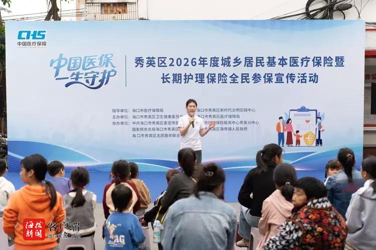 商报全媒体讯(椰网/海拔新闻记者 王辉)1月21日,海口市秀英区2026年度城乡居民基本医疗保险暨长期护理保险全民参保宣传活动在海口新村举办。活动以“中国医保 一生守护”为主题,通过文艺表演、政策解读、互动咨询等形式,让医保政策宣传更接地气、更有温度。