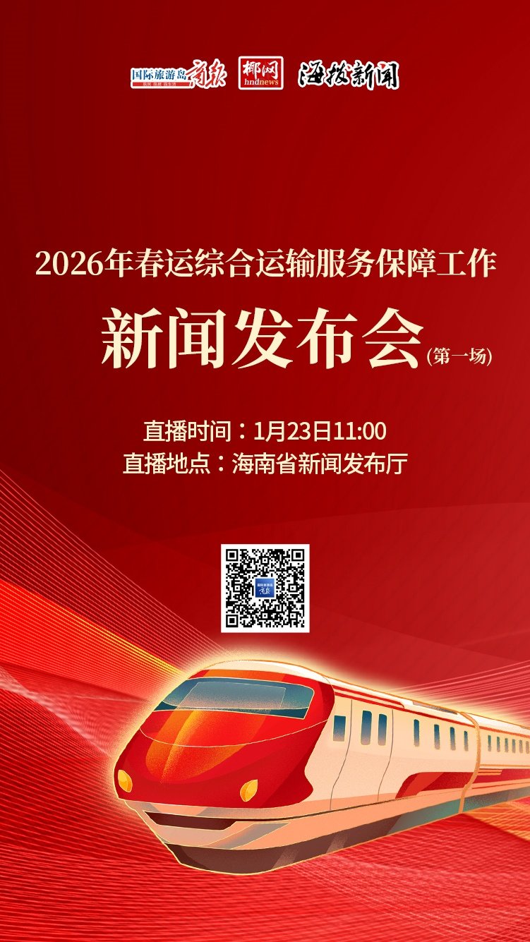 上午11时将举行2026年春运综合运输服务保障工作新闻发布会(第一场),届时,海南省交通运输厅党组书记穆克瑞,海口市人民政府党组成员、副市长冯勇,海南省公安厅党委委员、副厅长甄志刚,海南海事局党组成员、副局长王欣铭,民航海南监管局副局长许彦介绍相关情况,并答记者问。