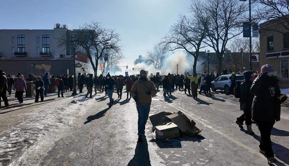 这是1月24日在美国明尼苏达州明尼阿波利斯市拍摄的示威抗议现场。新华社发