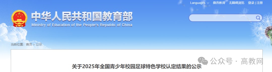 1月27日,教育部发布了关于2025年全国青少年校园足球特色学校认定结果的公示。
