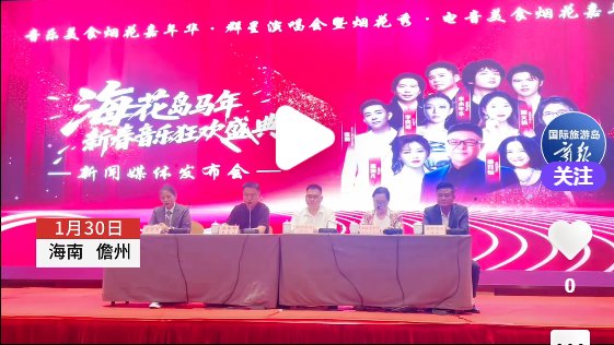 商报全媒体讯(椰网/海拔新闻记者 黄桂风 摄影报道)1月30日,海花岛马年新春音乐狂欢盛典新闻媒体发布会在儋州市那大镇举行。记者从会上获悉,这场集多元音乐、特色美食、璀璨烟花与滨海风光于一体的大型文旅活动,将于2026年2月18日至23日(农历正月初二至初七)在儋州海花岛1号岛B区观海平台大草坪举行。活动旨在为广大市民游客献上丰富多彩的新春文化大餐,进一步擦亮海花岛文旅品牌,助力儋州文旅产业提质升级,为海南自贸港文旅融合高质量发展注入新动能。