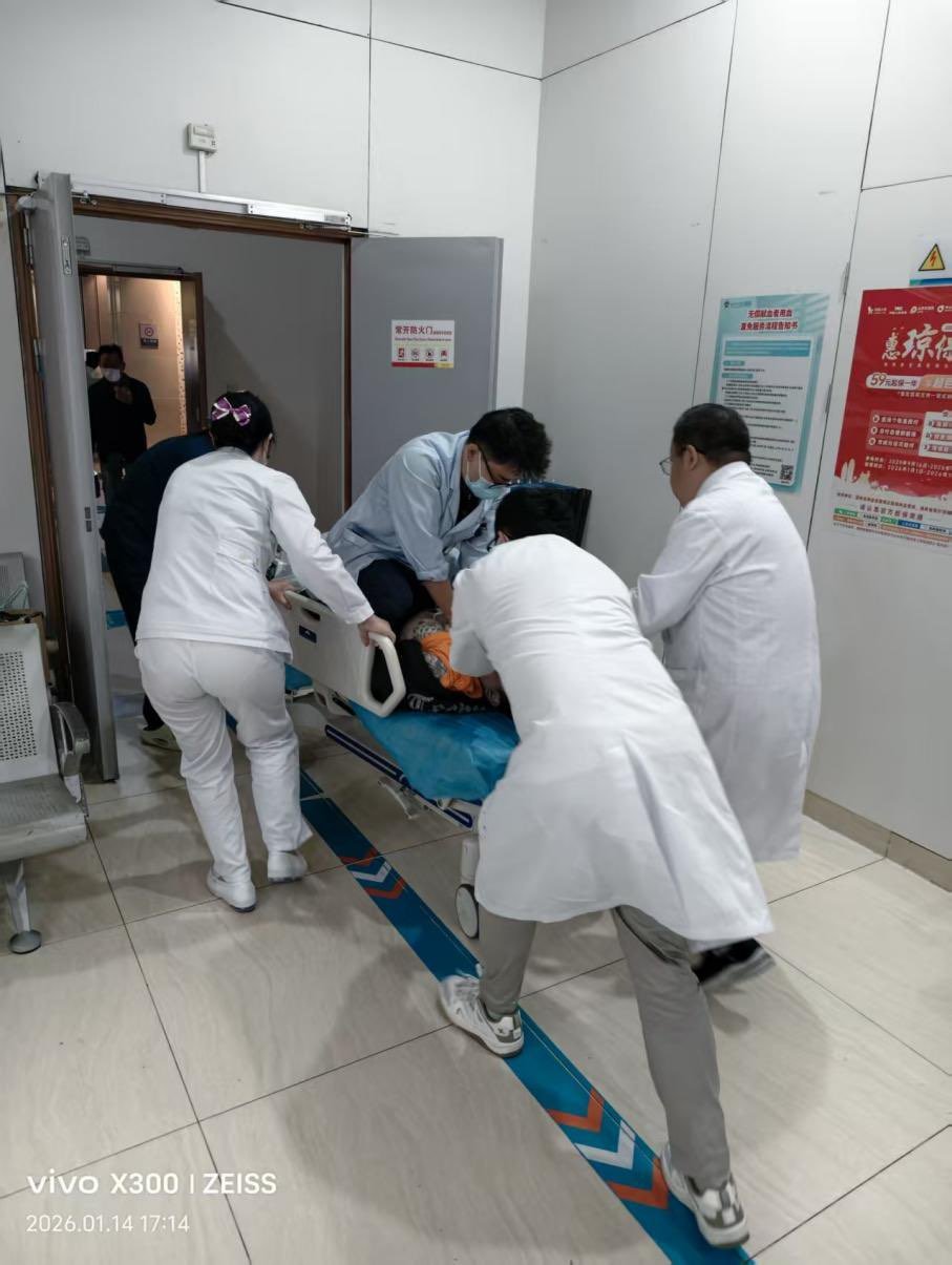 商报全媒体讯(椰网/海拔新闻记者 柯育超)上一秒钟还在低头行走看手机,下一秒钟就突然倒地……胸痛带来的生命的威胁就这样突如其来,不可忽视!1月14日下午,在海南医科大学第一附属医院门诊6楼大厅发生惊魂一幕,33岁的刘先生在候诊时突然倒地、意识丧失、心跳和呼吸停止,一场惊心动魄的“生命接力”就此展开。从门诊到急诊,从导管室到ICU,多学科团队无缝衔接,在黄金时间内展开了一场教科书级的抢救。