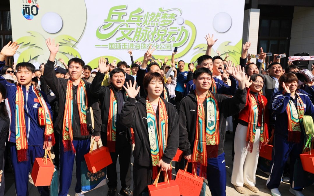 活动亦注重体育与文化的融合。在海瑞文化公园,林诗栋与众多市民游客挥拍互动,现场气氛热烈。不少观众表示,这不仅让他们体验到乒乓球的激情与魅力,也获得了难得的为自己喜爱的运动员现场加油的机会。