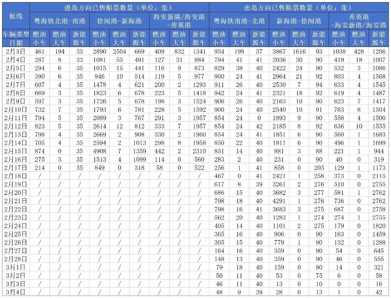 2026年春运期间琼州海峡客滚运输情况及船票预售信息(截至2月3日7:00)