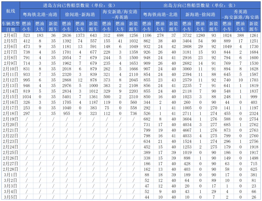 2026年春运期间琼州海峡客滚运输情况及船票预售信息(截至2月4日7:00)