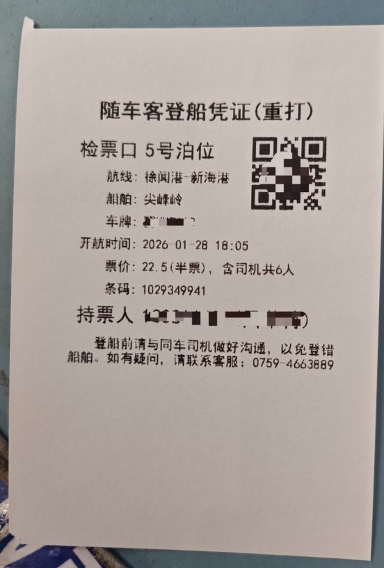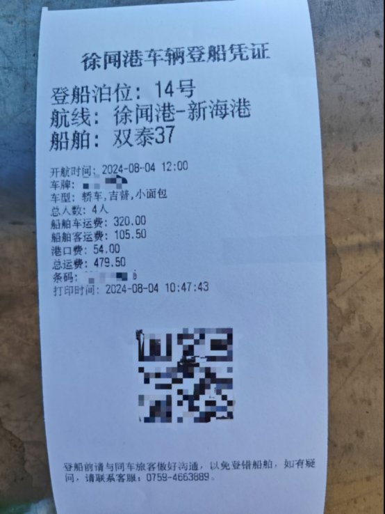 抵达徐闻港后,请凭身份证直接换乘轮渡前往海口新海港。登船及航行总时长约120分钟。