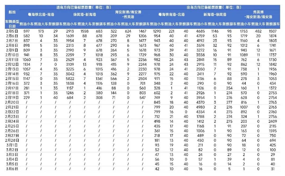 2026年春运期间琼州海峡客滚运输情况及船票预售信息(截至2月5日7:00)