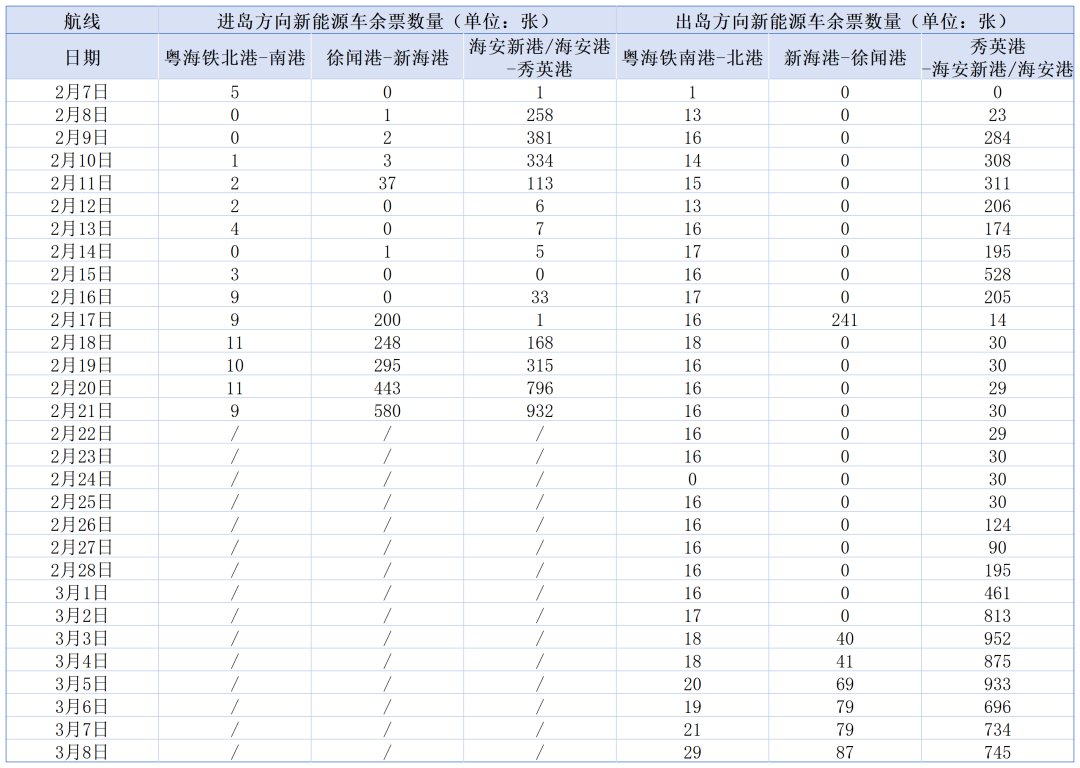 春运期间琼州海峡客滚运输情况及船票预售信息(截至2月7日7:00)