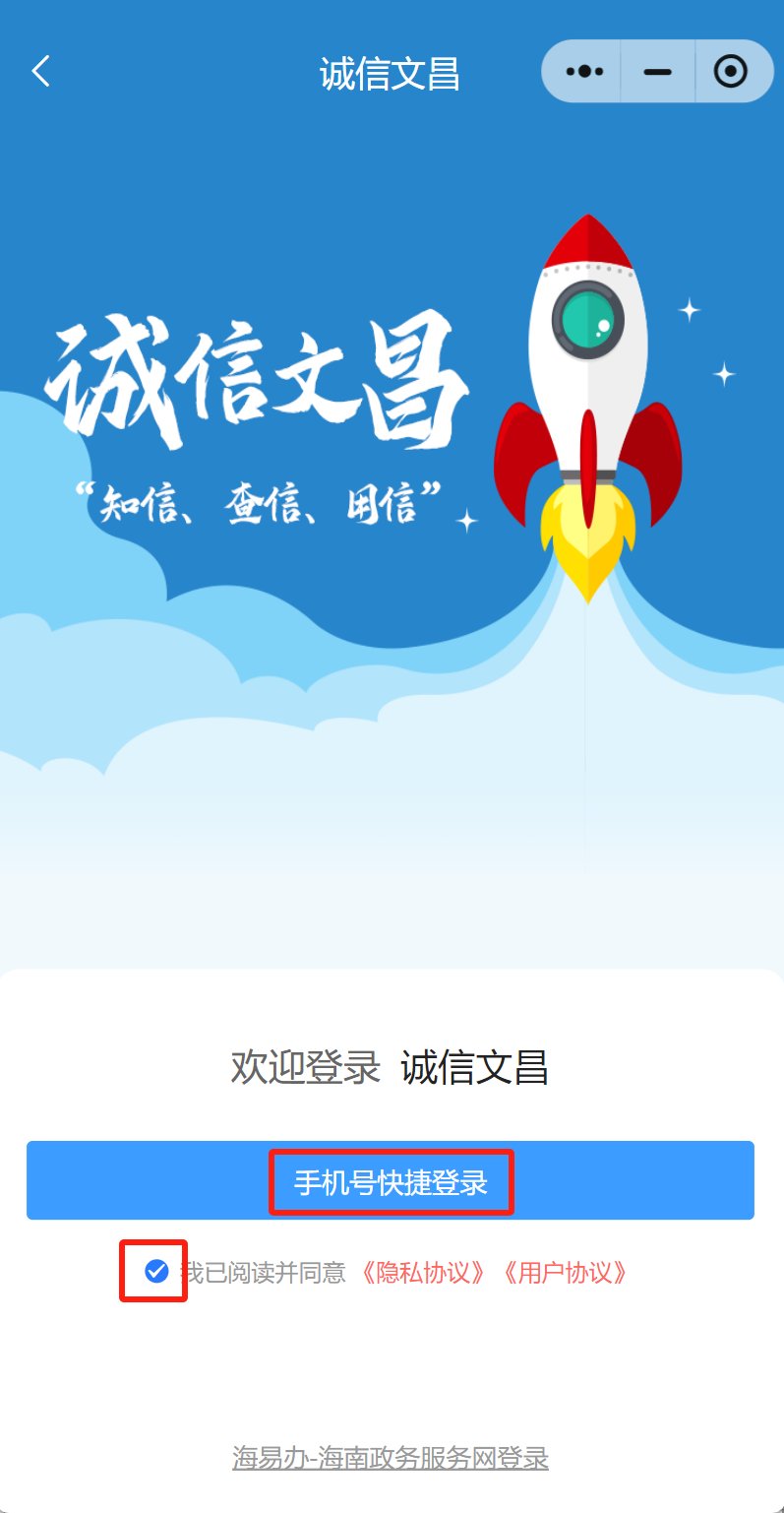 1.微信扫描下方二维码,进入“诚信文昌”小程序,点击“航天发射车辆预约”图标进行登录。