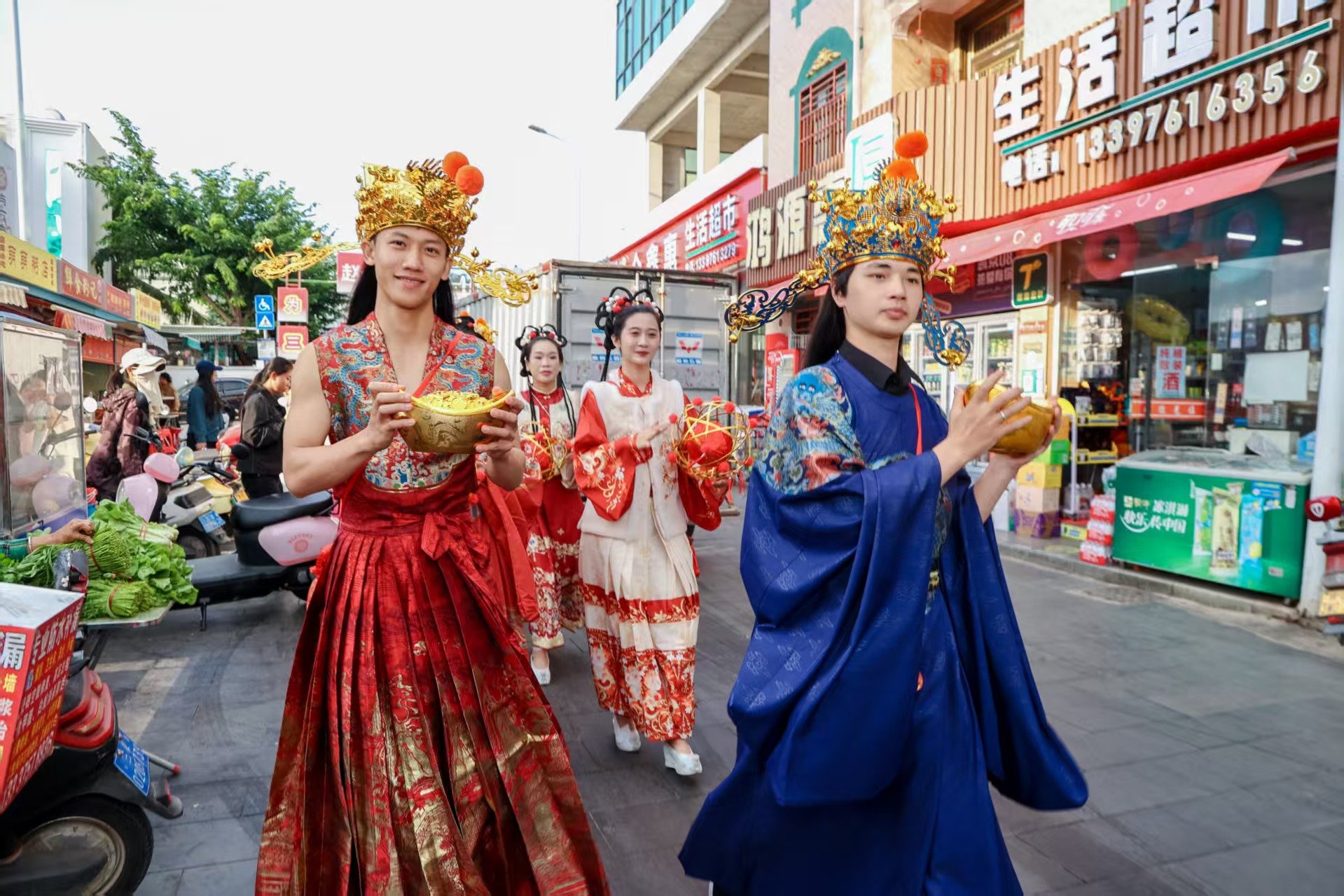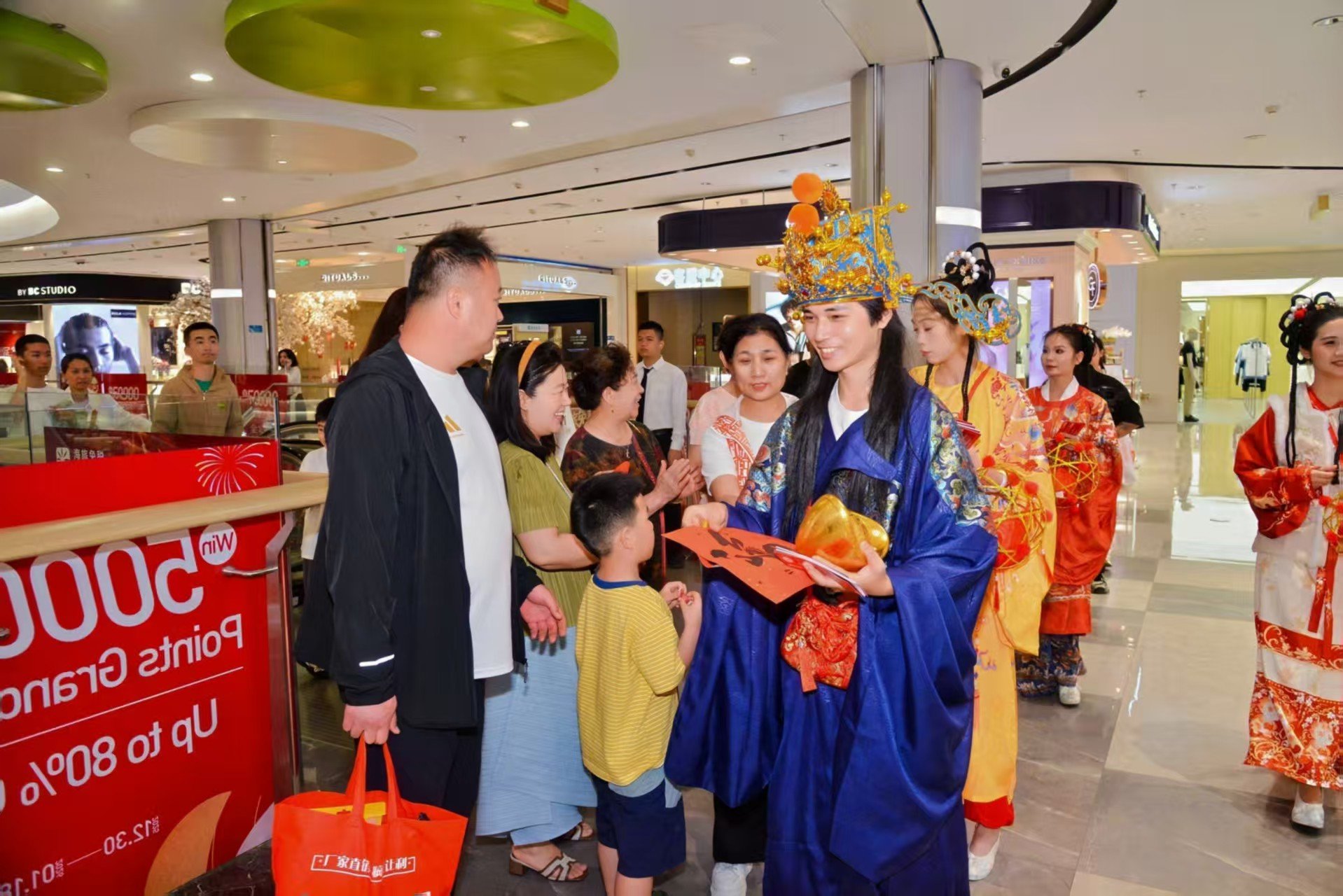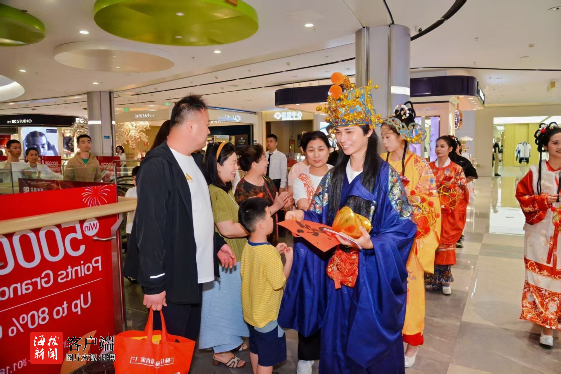 活动期间,“财神天团”惊喜出街,先后闪现夏日站潮流地标、海旅免税城购物场景与六盘村特色村落等。现场设置了“好运礼品”派送环节,财神巡游队伍向沿途市民游客派发新春主题好礼,包括巧克力金币、吉祥物钥匙扣、福字、免税代金券等寓意吉祥的礼品,传递着“共享喜气、全城同乐”的节日心意,让每一位相遇的市民游客都能直接感受到来自三亚的新春祝福与温暖。