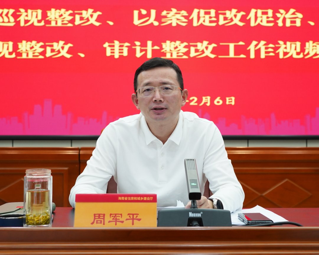 会议通报了中央巡视整改工作推进情况、审计整改工作推进情况、以案促改促治工作推进情况、营商环境巡视整改工作推进情况,海口市、屯昌县等2个市县、3家单位就加速推进工作落实作表态发言,省住建厅厅党组书记、厅长周军平作了工作部署。