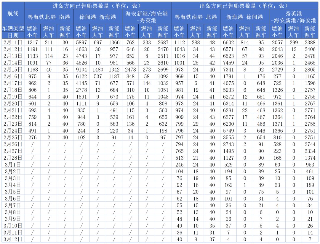 2026年春运期间琼州海峡客滚运输情况及船票预售信息(截至2月11日7:00)