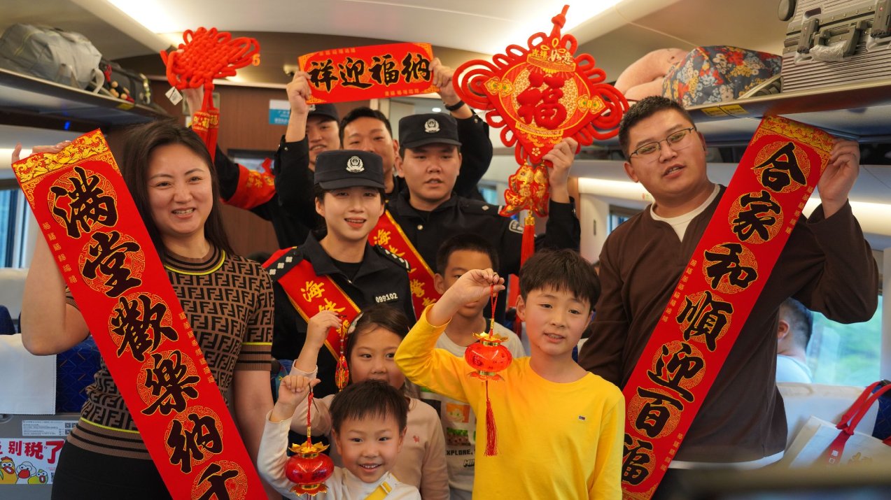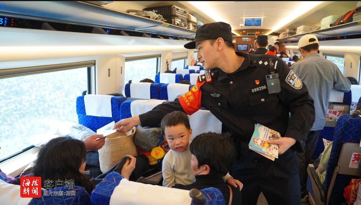 小年送福上车厢!海南乘警开展春运安全宣传活动