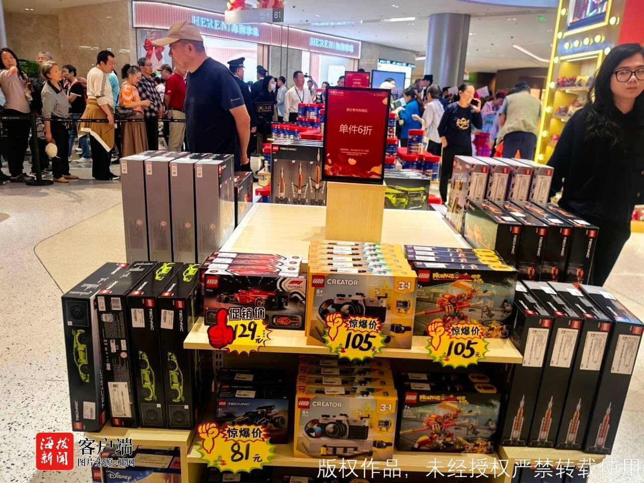 同时,记者还注意到,该店内部分“零关税”商品是2件9折,3件8.5折,叠加每满999元减100元等福利惠民政策。该活动将持续至2月28日。不仅如此,该店内的部分乐高可享6折优惠,甚至有的商品不超百元,现场吸引了不少大朋友、小朋友“买买买”。